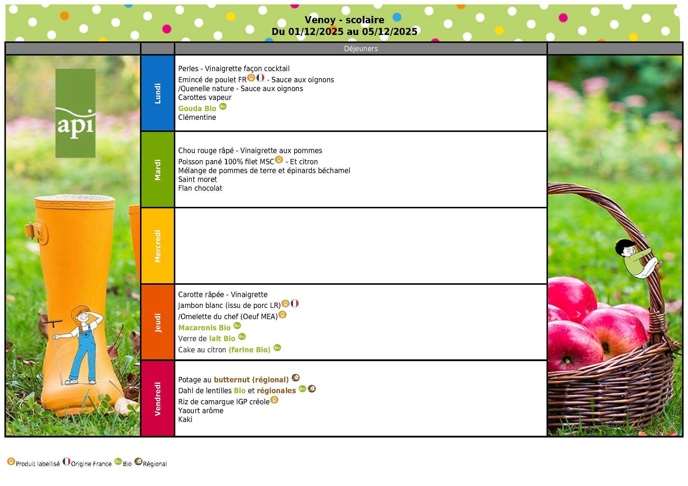 Pour l'année scolaire 2025/2026 : - 4.45 € pour les enfants scolarisés inscrits à la cantine