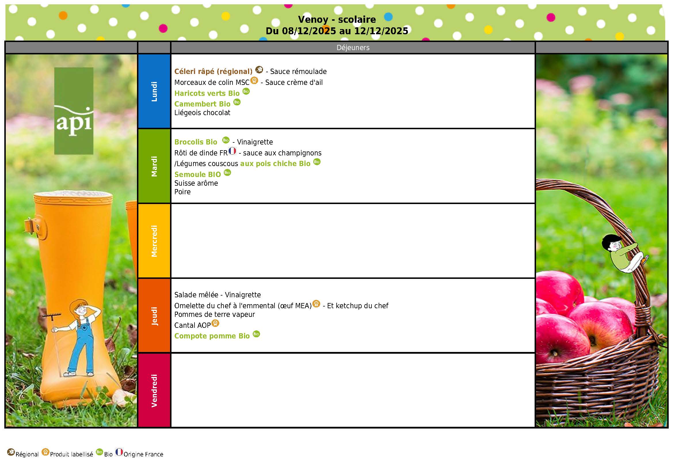 - 4.45 € + 8 € = 8.45 € pour les enfants scolarisés non inscrits à la cantine à la date prévue sur le coupon d'inscription - 5.50 € pour les enseignants, le personnel communal, le personnel du centre de loisirs ou autre personne en rapport direct avec la municipalité. Les repas sont commandés et payés par la Mairie le mercredi midi pour la semaine suivante, la fiche d'inscription est à retourner impérativement à la date indiquée. Durant toute l'année, si la fiche d'inscription nous parvient après la date indiquée, les repas seront facturés 8.45 euros (au lieu de 4.45 euros) pour la première semaine du mois.